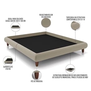 Color: Bege | ProductHeight: 28 cm | Tamanho da cama: Queen | MaterialFamily: Madeira de Eucalipto, Espuma | ColorSimple: Bege | ProductLength: 210 cm | ColorFamily: Bege | OriginCountry: | Material: Madeira de Eucalipto, Espuma | Modelo: Otto | Tipo de cama: Estofada | SizeDescription: Largura: 176 cm x Altura: 28 cm x Profundidade: 210 cm | Largura: 176 cm | Peso: 58 kg | Peso máximo suportado por cama: 250 kg | Altura: 28 cm | Cor: Bege | ProductWeight: 58 kg | ColorSupplier: Bege | Requer montagem: Sim | Model: Otto | ProductWarranty: 90 dias após o do produto | ProductWidth: 176 cm | SupplierSimpleName: Cama Casal Queen Pés de Madeira 176cm Otto P05 Veludo Bege - Lyam Decor | ProductInstructions: Produto para uso em ambiente interno, nao devendo ficar exposto ao sol, calor e umidade excessivos. | ProductContents: 01 Cama | OriginState: PR