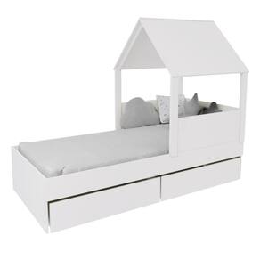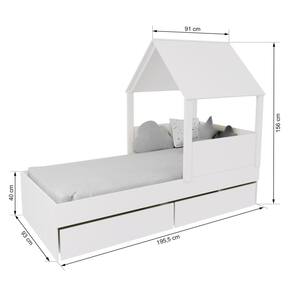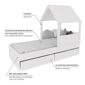 Cama Casinha com Telhado e 02 Gavetas Branco Megamobilia