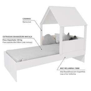 Material Principal: MDF | Cor Predominante: Branco | Necessita Montagem: Sim | Acompanha Colchão: Não | Tipo de Cama: Solteiro | Cor: Branco