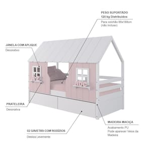 Material Principal: Madeira Maciça | Cor: Rosa/ Branco | Necessita Montagem: Sim | Acompanha Colchão: Não | Tipo de Cama: Solteiro