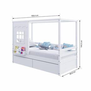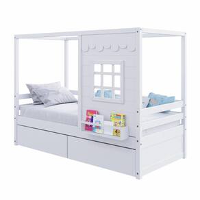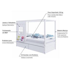 Diferenciais: 02 Gavetas, Casinha com fechamento em MDF, Janela e Prateleira para Livros e Decoração,Montagem Reversível (Lado Direito ou Lado Esquerdo)
