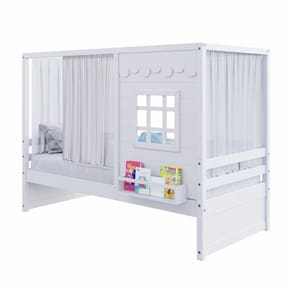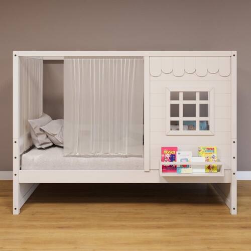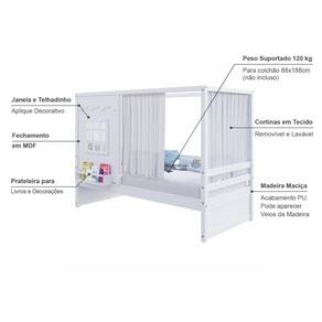 Diferenciais:Casinha com fechamento em MDF, Janela e Prateleira para Livros e Decoração,Montagem Reversível (Lado Direito ou Lado Esquerdo)