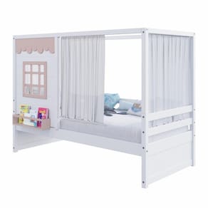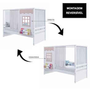 Diferenciais: Casinha com fechamento em MDF, Janela e Prateleira para Livros e Decoração, Montagem Reversível (Lado Direito ou Lado Esquerdo)