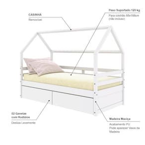 Material Principal: Madeira Maciça | Cor: Branco | Necessita Montagem: Sim | Acompanha Colchão: Não | Tipo de Cama: Solteiro
