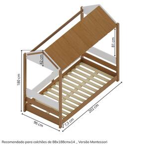 A Cama Casinha Solteiro Reversível Aria Casatema MadeiraOriginals é a materialização da liberdade de crescer, transformando o quarto em um universo de descobertas e aconchego. Nascida do encontro entre o design natural e a funcionalidade, esta peça é uma verdadeira casa de sonhos, que acompanha a evolução da criança. Sua estrutura 100% em madeira maciça de pinus com acabamento em verniz fosco nogueira e detalhes em MDF laqueado branco assegura a robustez e a Segurança Prioritária que tranquilizam os pais, sendo um investimento em Qualidade e Durabilidade. O grande diferencial é sua característica reversível: ela pode ser montada na altura montessoriana baixa, incentivando a autonomia desde cedo, ou na altura tradicional, conforme a criança cresce. Este Toque de Sofisticação e Aconchego, com seus contornos suaves e toque artesanal, garante que o quarto deixe de ser apenas um lugar de dormir e se torne um refúgio acolhedor, onde a poesia do design convida a brincar e sonhar com leveza. Acompanha Cama Auxiliar: Não Acompanha Colchão: Não Altura do Estrado até o Chão: 30,5 cm Ambiente Principal: Quarto Infantil codigo_ean: 7900288269287 Complexidade da Montagem: Média: pode ser montado por mais de uma pessoa e/ou necessite de maior conhecimento para montagem Cor: Nogueira/Branco Cor do Produto: Nogueira/Branco Escala de Brilho: Semi-Fosco Itens Inclusos: 1 Cama Casinha, Manual de Montagem e Kit Ferragens Linha ou Coleção: Aria Manual de Montagem e Instalação: https://product-hub-prd.madeiramadeira.com.br/927551923/documents/50e92e3f-9e0d-44dc-8438-ce4fb80e260c3288854338717611598171864.pdf Marca: Casatema Material do Estrado: Madeira Maciça Material Principal: Madeira Maciça modular: Não Montagem Flex: Pode ser montado como cama padrão ou montessoriana Necessita Montagem: Sim Origem do Produto: Nacional Permite a Utilização de Cama Auxiliar: Sim Peso: 58,5 kg Possui Baú: Não Possui Gavetas: Não Possui Pés: Não Possui Portas: Não Possui Prateleiras: Não Possui Telhado: Sim Recomendações de Uso, Manutenção e Limpeza: Na limpeza não utilizar produtos químicos e abrasivos, usar apenas um pano umedecido, para garantir a maior durabilidade do móvel. Sistema de Montagem: Parafusos, cavilhas e porcas Suporta Até (kg): 100 kg Tamanho do Colchão Indicado (L x C): 188cm x 88cm Tipo de Cama: Cama Casinha Tipo de Colchão: Solteiro Tipo de Estrado: Fixo Tipo de Grade de Proteção: Grade Tipo de Madeira Maciça: Pinus