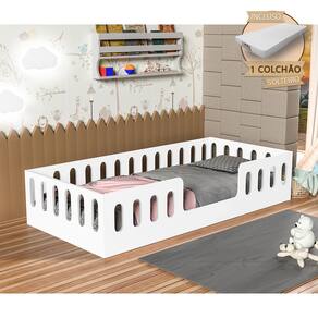 Cama Cercadinho Infantil Criança Mdf Helo Solteiro com Colchão - Branca - Branco