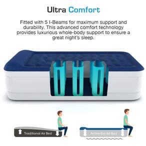 Nosso colchão inflável mais avançado Projetado com uma estrutura de suporte interna que imita o design de uma cama normal para fornecer suporte e conforto durante a noite. Uma bolsa de viagem está incluída para fácil embalagem e transporte. Bomba de CA elétrica embutida uma bomba de CA integrada e fácil de usar infla rapidamente até a firmeza total em 2 minutos. Com o toque de um botão, ele esvazia automaticamente o colchão de ar para que possa ser zenado em espaços pequenos. Apoio de pescoço e cabeça nosso colchão de ar duplo tem um travesseiro ergonomicamente projetado que segue a curvatura de seu pescoço e coluna para fornecer conforto incomparável enquanto você dorme, garantindo que você se sinta totalmente renovado pela manhã. Estrutura durável Uma camada superior flocada à prova dágua extra espessa, resistente e à prova dágua no colchão inflável foi projetada com um material multicamadas, resistente a perfurações durável. Tamanho duplo pessoa individual colchão de ar duplo com bomba embutida. Dimensões infladas de 99 x 190 x A altura do colchão é , incluindo o travesseiro, a altura do colchão é . Remendos para reparo de furos e bolsa de viagem incluídos Marca: Não Informado