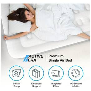 Confortável e de suporte Elevado a 18 polegadas do chão, este colchão de ar duplo é equipado com 21 bobinas de ar estruturadas que fornecem suporte da cabeça aos pés para uma noite de sono confortável e relaxante. Este sistema de suporte avançado evita quedas e protâncias comuns em outros modelos de colchão inflável e permite uma capacidade de peso de até 265 libras. Travesseiro embutido este colchão inflável com bomba embutida apresenta um travesseiro levantado exclusivo de 3 polegadas para suporte aprimorado de cabeça e pescoço e alinhamento espinhal aprimorado para conforto semelhante ao de uma cama durante a noite. Inflação rápida A bomba elétrica integrada e fácil de usar infla rapidamente a cama inflável dupla até a firmeza total em menos de 3 minutos. Com o toque de um botão, ele esvazia automaticamente o colchão inflável para facilitar o zenamento e o transporte na prática bolsa de viagem fornecida. Design robusto e durável apresenta uma camada superior flocada extra espessa, resistente e à prova de guerra, que é extremamente durável e confortável. Este colchão de ar duplo com bomba embutida foi projetado com material resistente a perfurações de calibre 15, que resiste a arranhões e arranhões acidentais. Tamanho duplo pessoa solteira Este colchão inflável tem dimensões infladas de 99 x 190 x travesseiro . Remendos de reparo de punção incluídos Marca: Não Informado