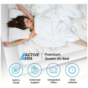 INFLAÇÃO RÁPIDA Colchão de ar Queen Size com bomba elétrica fácil de usar integrada infla rapidamente a total firmeza em menos de 3 minutos. Ao apertar um botão, ele esvazia automaticamente o colchão de ar para facilitar o zenamento e o transporte. ALMOFADA INCORPORADA A almofada embutida proporciona suporte de cabeça e pescoço com conforto semelhante a uma cama durante a noite. PROJETO ERGONÔMICO O leito de sopro é equipado com 35 bobinas de ar estruturadas para máximo apoio e durabilidade. Esta avançada tecnologia de conforto garante um excelente apoio ao seu corpo para uma boa noite de sono. ESTRUTURA DURÁVEL Uma camada superior flocada extra grossa, resistente ao desgaste e impermeável foi projetada com um material multicamadas, resistente a perfurações de agulhas com 1, 15 gauge. Tamanho Queen Airbed com dimensões infladas de 60 x 80 x 20 1.53 m x 2,03 m x 0.51 m . Pedaços de reparo de punção e bolsa de transporte incluído Marca: Não Informado
