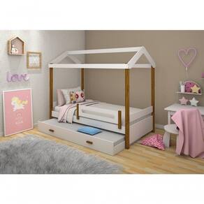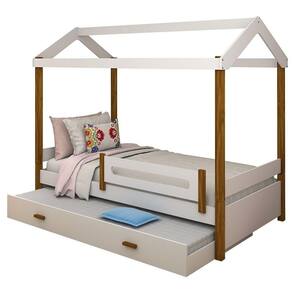 Cama Com Auxiliar Cabana Solteiro Branco E Mel Com Colchão Bicama Montessoriana Isa Solteiro Branco e Mel com Colchão