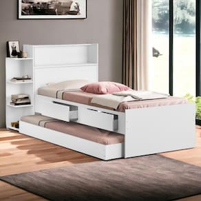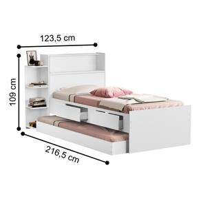 Cama Com Auxiliar Solteiro Gavetas E Baú Branco