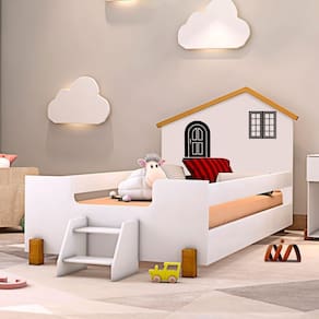 - Acompanha uma escadinha para auxiliar a criança a subir na cama