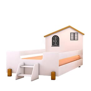 - Cabeceira em forma de casinha, que já vem adesivada com portinha e janelinha
