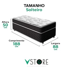 A tecnologia e funcionalidade que sua casa merece estão aqui!A Cama Conjugada Benfica é a escolha perfeita para quem busca qualidade, conforto e praticidade. Com o colchão acoplado à base, ela oferece uma solução completa para o seu dormitório, eliminando a necessidade de peças separadas e otimizando o espaço com estilo e funcionalidade.Produzida com espuma D33 e conforto extra firme, proporciona suporte ortopédico e o alinhamento ideal para a sua coluna, garantindo noites de sono reparadoras. O box, feito com madeira reflorestada e estrutura super resistente, assegura a durabilidade e a qualidade que você merece.Adquira agora mesmo e transforme suas noites de sono com conforto, qualidade e praticidade!CARACTERÍSTICAS DO PRODUTOMarca: V-StoreModelo: Cama Conjugada BenficaCor do Box: PretoTamanho: SolteiroDimensões: 88x50x188 (Largura x Altura x Comprimento)Estrutura: Espuma D33Peso máximo recomendado: 100 kg (Por Pessoa)Altura do Box: 38 cmAltura dos Pés: 3 cmAltura total: 50 cmGarantia: 3 Meses (Estrutura e Estofamento) / 3 Meses (Tecido)Selo Ecologicamente CorretoAtenção:- Antes de finalizar sua compra, recomendamos que verifique se as dimensões do produto são adequadas para serem transportadas pelos elevadores, portas, escadas e corredores de sua residência. Ressaltamos que não nos responsabilizamos pelo transporte do produto por meios específicos, como escadas, guinchos ou içamentos.- É possível que hajam leves variações de cor de acordo com o dispositivo que está sendo utilizado como smartphones, computadores, monitores e outros.
