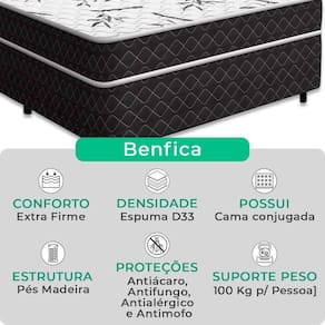 A Cama Conjugada Benfica é a escolha perfeita para quem busca qualidade, conforto e praticidade. Com o colchão acoplado à base, ela oferece uma solução completa para o seu dormitório, eliminando a necessidade de peças separadas e otimizando o espaço com estilo e funcionalidade.