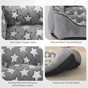 - Cama macia e fofa: esta cama para cães pequenos apresenta um design de padrão de estrela no interior, equilibrando praticidade e estética. Feita com exterior de camurça macia e resistente a manchas e interior aconchegante de lã de cordeiro, mantém seu animal de estimação aquecido e confortável no inverno e é preenchido com fibra de PP ecológica, oferece um espaço para dormir respirável e aconchegante.