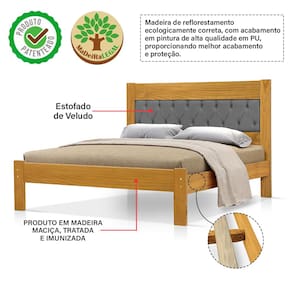Características: Modelo: Viena Tipo: Cama de Casal Material da Estrutura: Madeira Cor da Estrutura: Imbuia Material da Cabeceira: Veludo Cor da Cabeceira: Cinza Design elegante e funcional