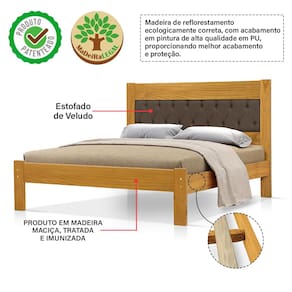 Cama de Casal de Madeira Imbuia Viena com Cabeceira Estofada Veludo Marrom