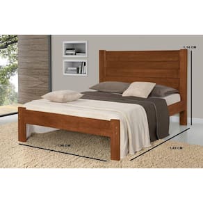 Cama de Casal Lara de Madeira Maciça Pinus - Marrom