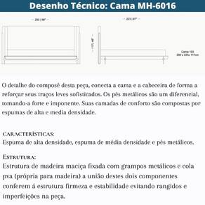 Cama De Casal Mh-6016 Herval Estofado Casal Colchão 193 Cm Madeira Maciça Off White Detalhe Marrom B O detalhe do composê desta peça, conecta a cama e a cabeceira de forma a reforçar seus leves e sofisticados. Os pés metálicos são um diferencial, tornando-a forte e imponente. Suas camadas de conforto são compostas por espumas de alta e média densidade. A cama MH-6016 é ideal para trazer mais sofisticação para o quarto, tem design moderno e um acabamento detalhado, produto de grande qualidade que contribui e valoriza ainda mais o ambiente. A linha de móveis da Herval é toda fabricada seguindo o certificado FSC, garantindo que seus produtos são ecologicamente corretos.