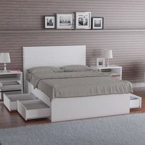 Peso Suportado: Cama: 200 kg distribuídos / Gavetas: 4 kg cada.