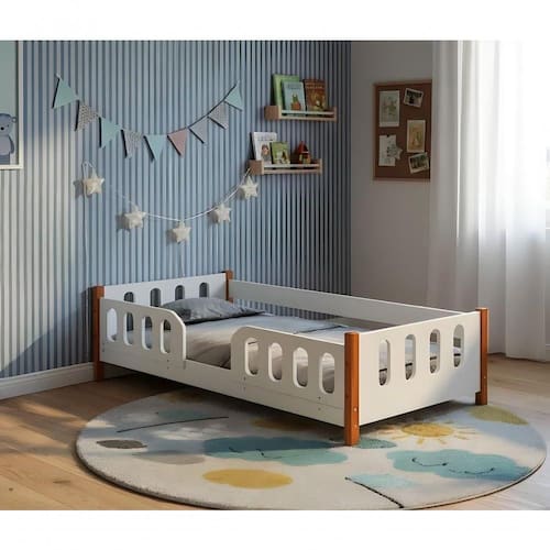 Cama De Chão Montessoriana Infantil Branca Com Gradinha
