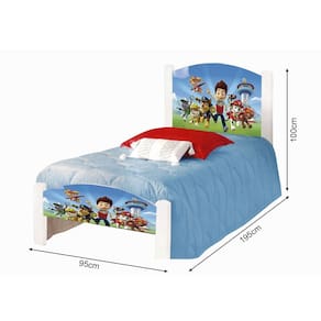 Cama de Criança Infantil Solteiro Patrulha Canina Adesivada com Grade de Proteção e Colchão - Branco