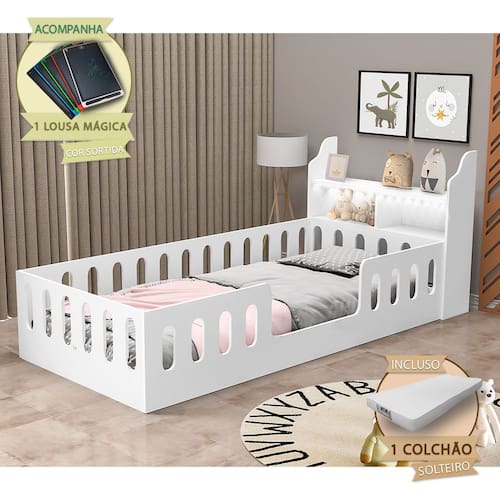 Com um design seguro e funcional, esta cama é perfeita para criar um ambiente acolhedor e aconchegante. Com altura próxima ao chão, seu filho poderá subir e descer da cama com facilidade, promovendo autonomia e desenvolvimento motor. Além disso, a estrutura resistente e durável garante segurança durante o sono. O estilo minimalista e moderno se adapta perfeitamente a qualquer decoração de quarto infantil. Proporcione ao seu filho uma experiência única.