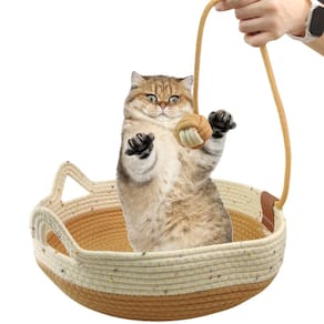 Com 4 fios de corda de algodão trançados com acabamento em tecido lavável, essa caminha é super resistente e ideal para o seu gatinho rasquear e descansar. Funciona também como um arranhador natural!