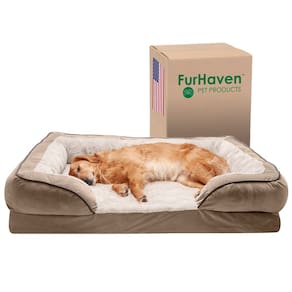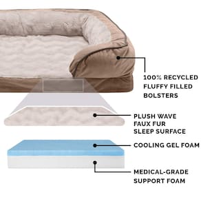 Furhaven Cama de gel refrescante para cães grandes com reforços removíveis e capa lavável, para cães de até 43 kg - Sofá confortável perfeito de ondas de pelúcia e veludo - Brownstone, Jumbo/GG
