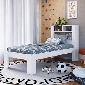 Cama de Solteiro com Cabeceira de Prateleira Branco Prodecor 214x96x111cm