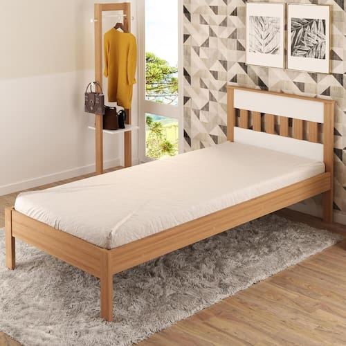 Cama de Solteiro com Cabeceira Ripada - Amêndoa/Branco