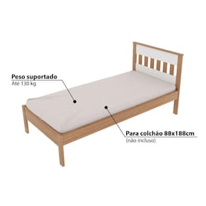 Características - Amêndoa/Branco. - Estrutura: MDP 15 mm/ Barras em MDP 25 mm. - Revestimento/Acabamento: BP e UV. - Estrado em madeira eucalipto. - Para colchão 88x188cm (não incluso). - Peso suportado: 130kg. - Produto entregue desmontado. - Marca: TecnoMobili.
