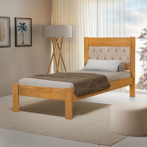 Características: Modelo: Viena Tipo: Cama de Solteiro Material da Estrutura: Madeira Cor da Estrutura: Imbuia Material da Cabeceira: Veludo Cor da Cabeceira: Bege Design elegante e funcional