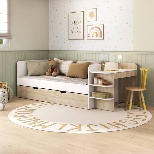 Resistente, funcional e versátil, a cama Helena é a escolha ideal para quem busca móveis de qualidade e organização inteligente em um só produto. Acabamento da Gaveta: Melamínico Acabamento da Prateleira: Melamínico Acompanha Cama Auxiliar: Sim Acompanha Colchão: Não Altura do Estrado até o Chão: 7,7 cm Ambiente Principal: Quarto Infantil Cama Auxiliar Acompanha Colchão: Não Cama Auxiliar com Rodízio: Sim Cama Auxiliar Suporta Até (kg): 80 kg codigo_ean: 7900288264497 Complexidade da Montagem: Média: pode ser montado por mais de uma pessoa e/ou necessite de maior conhecimento para montagem Cor: Branco/ Carvalho Cor do Produto: Branco/ Carvalho Cor Flex: Não Escala de Brilho: Fosco Escala de Brilho da Gaveta: Fosco Escala de Brilho da Prateleira: Fosco Extensível: Sim Gaveta com Chave: Não Itens Inclusos: 1 Bicama, Kit de Ferragens e Manual de Montagem Largura Máxima: 186 cm Largura Mínima: 93 cm Linha ou Coleção: Helena Manual de Montagem e Instalação: https://product-hub-prd.madeiramadeira.com.br/276411682/documents/91167b97-7460-4ca8-ae66-e18324173b403252532657817593273626899.pdf Marca: FD Material da Gaveta: MDF Material da Prateleira: MDF Material Principal: MDF modular: Não Montagem Flex: Não Necessita Montagem: Sim Origem do Produto: Nacional Permite a Utilização de Cama Auxiliar: Sim Peso: 90 kg Peso Máximo por Gaveta: 5 kg Peso Máximo por Prateleira: 5 kg Possui Baú: Não Possui Escrivaninha: Sim Possui Pés: Não Possui Portas: Não Possui Prateleiras: Sim Recomendações de Uso, Manutenção e Limpeza: Limpar somente com um pano levemente umedecido. Indicado para ambientes internos Sistema de Montagem: Parafusos, cavilhas e minifix Suporta Até (kg): 165 kg Tamanho da Cama: Solteiro Tamanho do Colchão Indicado (L x C): 88cmx188cm Tamanho do Colchão Indicado Cama Auxiliar: 88x188 Tipo de Cama: Bicama Tipo de Colchão: Solteiro Tipo de Corrediça da Gaveta: Metálica Telescópica Tipo de Estrado: Fixo Tipo de Puxador da Gaveta: Embutido