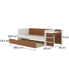 Com resistência, funcionalidade e acabamento refinado, a cama Helena transforma qualquer quarto infantil em um espaço acolhedor, bonito e organizado. Acabamento da Gaveta: Melamínico Acabamento da Prateleira: Melamínico Acompanha Cama Auxiliar: Sim Acompanha Colchão: Não Altura do Estrado até o Chão: 7,7 cm Ambiente Principal: Quarto Infantil Cama Auxiliar Acompanha Colchão: Não Cama Auxiliar com Rodízio: Sim Cama Auxiliar Suporta Até (kg): 80 kg codigo_ean: 7900288263605 Complexidade da Montagem: Média: pode ser montado por mais de uma pessoa e/ou necessite de maior conhecimento para montagem Cor: Branco/ Castanho Cor do Produto: Branco/ Castanho Cor Flex: Não Escala de Brilho: Fosco Escala de Brilho da Gaveta: Fosco Escala de Brilho da Prateleira: Fosco Extensível: Sim Gaveta com Chave: Não Itens Inclusos: 1 Cama Infantil, 1 Cama Auxiliar, 1 Escrivaninha, Kit de Ferragens e Manual de Montagem Largura Máxima: 186 cm Largura Mínima: 93 cm Linha ou Coleção: Helena Manual de Montagem e Instalação: https://product-hub-prd.madeiramadeira.com.br/189228182/documents/8abca81e-ff46-4ee7-8045-4f6afd2902833252532657817593273626899.pdf Marca: FD Material da Gaveta: MDF Material da Prateleira: MDF Material Principal: MDF modular: Não Montagem Flex: Não Necessita Montagem: Sim Origem do Produto: Nacional Permite a Utilização de Cama Auxiliar: Sim Peso: 90 kg Peso Máximo por Gaveta: 5 kg Peso Máximo por Prateleira: 5 kg Possui Baú: Não Possui Escrivaninha: Sim Possui Pés: Não Possui Portas: Não Possui Prateleiras: Sim Recomendações de Uso, Manutenção e Limpeza: Limpar somente com um pano levemente umedecido. Indicado para ambientes internos Sistema de Montagem: Parafusos, cavilhas e minifix Suporta Até (kg): 165 kg Tamanho da Cama: Solteiro Tamanho do Colchão Indicado (L x C): 88cmx188cm Tamanho do Colchão Indicado Cama Auxiliar: 88x188 Tipo de Cama: Bicama Tipo de Colchão: Solteiro Tipo de Corrediça da Gaveta: Metálica Telescópica Tipo de Estrado: Fixo Tipo de Puxador da Gaveta: Embutido