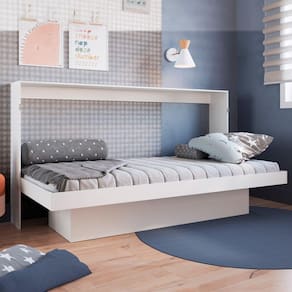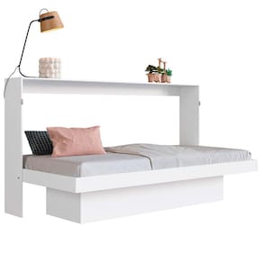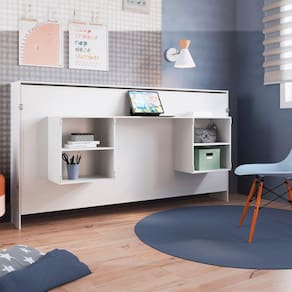 O(a) Cama de Solteiro Horizontal Articulável com Escrivaninha de Estudo Branco - Loja é produzido em MDP na escala de brilho Semi-Brilho, e possui um grau de dificuldade de montagem: Médio.