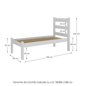 Cama De Solteiro Madeira Maciça Para Colchão 78/88x188cm Multimóveis Cr35254 Branco Branco Transforme o seu espaço com a Cama de Solteiro Madeira Maciça para Colchão 78/88x188cm Multimóveis CR35254, uma peça que une qualidade e sustentabilidade. Produzida em madeira de pinus (estrado em eucalipto) proveniente de reflorestamento, esta cama oferece não apenas resistência, mas também um toque rústico e elegante ao seu quarto. Com um acabamento em verniz (cor branca possui acabamento em laca), a cama trazem um toque moderno e elegante para seu quarto. Sua estrutura robusta suporta até 110kg, garantindo segurança e durabilidade. Além disso, conta com dupla furação, permitindo a utilização de colchões de 78cm ou 88cm de largura, adaptando-se às suas necessidades. Prática e versátil, esta cama é ideal para qualquer ambiente, seja em quartos de adultos, adolescentes ou até mesmo em espaços de hóspedes. Invista em um sono reparador com a qualidade e o charme desta cama Multimóveis. NÃO acompanha colchão (tamanho indicado: 78/88x188cm). Conteúdo da Embalagem: 1 (uma) Cama Manual de Montagem Kit Ferragem
