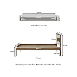 Cama - Altura: 92cm | Largura: 196cm | Profundidade: 96,7cm