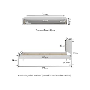 Dimensões do produto montado: Cama - Altura: 92cm | Largura: 196cm | Profundidade: 96,7cm Penteadeira - Altura: 13,8cm | Largura: 90cm | Profundidade: 45cm *Você pode consultar as medidas detalhadas na imagem técnica do produto.