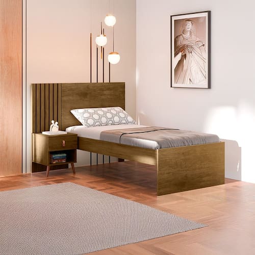 A Cama Lady Ripada une beleza e praticidade em um design moderno e aconchegante. Seu painel com detalhe ripado adiciona um toque de sofisticação ao ambiente, valorizando o espaço com elegância e estilo. Estruturada para garantir firmeza e durabilidade, oferece conforto e estabilidade para um descanso tranquilo. Ideal para compor quartos com personalidade, é uma opção perfeita para quem busca harmonia entre funcionalidade e bom gosto. Produto Montado: Sim Acabamento da Gaveta: Pintura Texturizada UV Acompanha Cama Auxiliar: Não Acompanha Colchão: Não Altura do Estrado até o Chão: 40 cm Altura do Estrado Superior até o Chão: 40.0000 Ambiente Principal: Quarto codigo_ean: 7900288280541 Complexidade da Montagem: Alta: deve ser montado por um montador especializado Cor: Jequitibá/Off White Cor do Produto: Jequitiba/Off White Cor Flex: NÃO Escala de Brilho: Brilhante Escala de Brilho da Gaveta: Brilhante Extensível: Não Gaveta com Chave: Não Itens Inclusos: 1 Cama, Kit Ferragem e Manual de Montagem Linha ou Coleção: Lady Manual de Montagem e Instalação: https://product-hub-prd.madeiramadeira.com.br/709048404/documents/75f60ce4-3158-4d52-85bd-ed77cba6f187330204986717618403638943.pdf Marca: J&A Móveis Material da Gaveta: MDF/MDP Material do Estrado: Pinus Material do Puxador da Gaveta: Plástico Material Principal: MDF/MDP Montagem Flex: NÃO Necessita Montagem: Sim Origem do Produto: Nacional Permite a Utilização de Cama Auxiliar: Não Peso: 36 kg Peso Máximo por Gaveta: 6 kg Peso Suportado por cada cama: 80 kg Possui Baú: Não Possui Escrivaninha: Não Possui Espelhos: Não Possui Gavetas: Sim Possui Grade: Não Possui Nichos: 01 Possui Pés: Não Possui Portas: Não Possui Prateleiras: Não Possui Rodízio: Não Quantidade de Gavetas: 01 Gaveta Recomendações de Uso, Manutenção e Limpeza: Limpeza com Pano Seco Sistema de Montagem: Parafusos, Bucha, Porca Tamanho da Cama: Solteiro Tamanho do Colchão Indicado (L x C): 0,88 X 1,88 Tipo de Cama: Convencional Tipo de Colchão: Solteiro Tipo de Corrediça da Gaveta: Metálica Simples Tipo de Estrado: Fixo Tipo de Puxador da Gaveta: Externo Trava de Segurança: Não undefined: 709662515