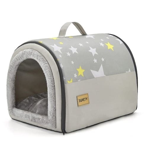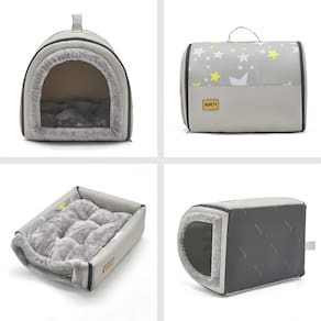 Nome do produto: Jiupety Casa aconchegante para cães pequenos, cama 2 em 1, ninho de dormir em caverna quente para gatos e cães Característica: 1?Design de função dupla: A casinha de cachorro 2 em 1 pode ser usada como cama de animal de estimação. No outono e inverno, é quente e ótimo para os hábitos de esconder dos animais de estimação. No verão, alise o teto para torná-lo um lugar de descanso em forma de sofá, arejado e confortável 2?Feito de esponja especial para robustez e durabilidade. O exterior é fácil de limpar. O travesseiro interno de dupla face é adequado para todas as estações 3?Design de correspondência de cores e impressão cuidadosamente trabalhado que pode adornar qualquer estilo de casa 4?Oferece aos amigos peludos um espaço privado e escondido, fazendo-os se sentirem seguros na cama da casinha de cachorro Especificação: Material: Esponja especial, pano oxford de alta densidade Dimensões: 45 C x 30 cm A (casa); 21 L x 20 A (porta) Cor: Cinza O pacote inclui: 1 x Casa de cachorro - Tamanho e ajuste: Tamanho da casa de cachorro 46 C x 35 L x 33 A polegadas. Tamanho da porta: 21 cm L x 20 cm A. Adequado para menos de 5 kg de gatos, gatinhos, filhotes e cães pequenos - Duas maneiras de usar: a casinha de cachorro 2 em 1 pode ser uma cama para animais de estimação quando você quiser. No outono e inverno, que é quente e está de acordo com o hábito de se esconder dos animais de estimação. No verão, pode ser em forma de sofá depois de pressionar o telhado, o que é arejado e confortável - Design do material: A casa de cachorro interna é feita de esponja especial, resistente e durável. A superfície externa é tecido oxford de alta densidade, fácil de limpar. O travesseiro interno de dupla face, preenchido com algodão PP, é volumoso e adequado para as quatro estações - Estilo e decoração: a correspondência de cores e o design de impressão foram cuidadosamente elaborados, o que pode adornar todos os estilos de casa. Confie em mim, cama de cachorro com caverna coberta não vai decepcionar você - Sensação de segurança: dê aos seus amigos peludos um espaço privado e oculto, a cama da caverna para cães é uma ótima maneira de fazê-los se sentirem seguros. Se você encontrar algum problema, uma equipe está esperando por você Jiupety cada momento