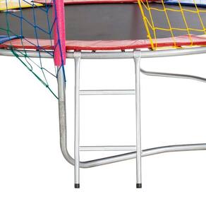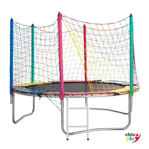 Sua lona de salto é fabricada em manta de nylon, sendo o modelo sem emendas. Sua estrutura é feita com ferro galvanizado podendo ser exposta ao tempo e suportando até 110kg sendo o modelo de Cama Elástica completo, acompanhando isotubos, rede de proteção, proteção de molas, molas, lona de salto, estrutura completa e escadinha de 2 degraus.