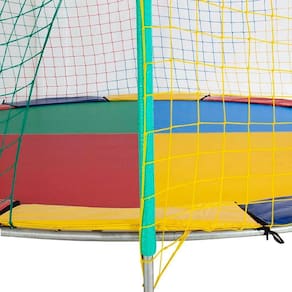 Outro ponto muito importante para essa cama elástica, está em sua lona de salto colorida com tecido emborrachado fabricado no Brasil, que chama a atenção das crianças, e, quando exposta ao sol por longo tempo não esquenta, ou seja, não queima os pés das crianças.