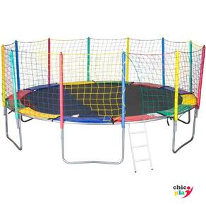 Sua lona de salto é fabricada em manta de nylon, sendo o modelo sem emendas. Sua estrutura é feita com ferro galvanizado podendo ser exposta ao tempo e suportando até 240kg sendo o modelo de Cama Elástica completo, acompanhando isotubos, rede de proteção, proteção de molas, molas, lona de salto, estrutura completa e escadinha de 3 degraus.
