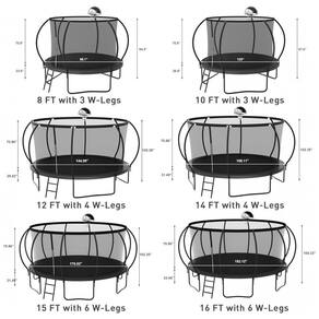 Capacidade de peso de 680 kgEste trampolim resistente de 2023 é feito de aço galvanizado de espessura pulverizada preta. O aço galvanizado tem a característica de durabilidade que faz com que não quebre por mais de 20 anos. Comparado com outros aços usuais, o aço galvanizado é mais estável, brilhante e mais confiável. Proteção segura de 360 A segurança é sempre nosso primeiro objetivo perseguido. E temos tomado mais medidas sobre isso agora ou no futuro. Cada trampolim tem 12 mangas pólo. Os postes do gabinete são acolchoados com espuma de , que pode proteger seus filhos de bater contra o poste de aço. Jump Higher Jumper Happier 6pcs Pernas em forma de U 12 pontos de contato equilibrados fornecem uma base estável para pular. 96pcs molas tapete de salto de alta densidade fornecem energia para saltar. Será uma plataforma segura para Saltar, Dançar e Ler. Oferecendo a você uma sensação de paz enquanto joga no tatame. Design sem porcaria Este trampolim pode facilmente acomodar uma família de 7 a 8 pessoas, este trampolim de 4,57 metros de largura pode suportar mais de 680 kg. Este trampolim de quintal é um trampolim de mastro curvo com design de rede interna. A rede de proteção envolveu todo o trampolim e a almofada de cobertura de mola é colocada na rede, o que elimina as lacunas entre o tapete e a rede para evitar lesões