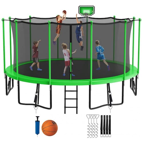 Certificação de segurança ASTM CPC CPSIA Líderes e inovadores em brincadeiras seguras no quintal. O trampolim para crianças e adultos de 15 pés leva a segurança do usuário como o primeiro fator e aprovou a certificação ASTM CPC CPSIA. Mantenha a inovação, a segurança e a qualidade em mente para produzir o melhor trampolim. A capacidade de peso do trampolim Jump Into Fun de 4 M com gabinete é de até 700 kg e pode acomodar de 8 a 9 crianças ao mesmo tempo. Este super trampolim externo grande e resistente se tornará um playground para toda a família. 2022 Design e Tecnologia Avançados Jump Into Fun O trampolim de 15 pés com estrutura de cesta de basquete é feito de aço totalmente galvanizado e pulverizado de 1,, em comparação com outros trampolins, é mais forte, mais antiferrugem e anticorrosão e tem uma vida útil mais longa 6 pernas em forma de W com 12 pólos para maior estabilidade e segurança. As molas galvanizadas de 96 peças se estendem uniformemente ao redor do tapete de salto, o que garante um salto suave e responsivo. Proteção Múltipla para Crianças Jump Into Fun Trampolim de 4 M para adultos 700 kg equipado com rede de proteção de 360 graus firmemente presa ao tapete de salto em toda a volta, sem deixar lacunas Trava dupla zíper e fivela na rede oferecem proteção dupla para as crianças A escada removível para as crianças entrarem e saírem facilmente meias elásticas antiderrapantes seriam uma preparação íntima Kit de âncora de amarração anexado perfeito para vento forte. Mais fácil de montar O trampolim Jump Into Fun de 4 M com gabinete fornece um manual gráfico detalhado e cobre todas as etapas de instalação. A ferramenta de mola e as luvas de instalação estão incluídas no pacote. Recomendamos que pais e filhos instalem o trampolim juntos para obter mais senso de realização, fazer cada passo e você obterá um trampolim perfeito de 15 pés. O trampolim Jump Into Fun de 4 metros com cesta de basquete mantém se e queima a energia de seus filhos e permite que você tenha mais tempo Marca: Não Informado