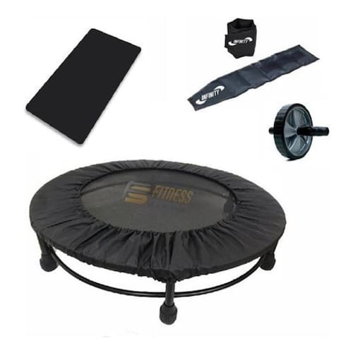 Cama elástica + colchonete + caneleira 5kg + rodinha +capa O jump - cama elástica trampolim é ideal para o uso em academias, condomínios e residências, além de queimar calorias de forma eficiente. Confeccionado em tubo redondo de aço com aro de reforço, possui pintura em epóxi e tem os pés fixos. São 32 molas para você manter o corpo em forma de uma maneira divertida e saudável. As molas são fixadas a tela por 16 suportes de aço. Pés em pvc antiderrapantes removíveis que se encaixam. Ações e benefícios: É uma forma divertida de queimar calorias, e além de ser um ótimo exercício aeróbico, também fortalece pernas e glúteos. Indicações: Ideal para o uso em academias, condomínios e residências. Indicado para . Dados técnicos: Diâmetro: 98 x 98 x 20 cm Marca: ols Peso: 8,2kg Peso estático máximo suportado 150kg A caneleira de peso 5 kg é ideal para a prática de exercícios de ginástica, academia, musculação, etc com peso. São caneleiras profissionais com carga, feitas em capota reforçado, dando mais conforto ao tornozelo. Não absorve suor, é fácil de limpar e higienizar . Possui uma costura dupla de reforço, evitando o vazamento do enchimento. Seu sistema de fechamento é feito em tiras aderentes, garantindo facilidade e segurança na hora de prender a caneleira na perna. Características: Cor: preto Lavável: sim Sistema de fechamento: tiras aderentes Outros: confortável ao tornozelo, não absorve suor, fácil de higienizar, possui costura reforçada evitando o vazamento do enchimento. Membros ou músculos trabalhados: coxas, abdômens, glúteos, panturrilhas e braços. Material: emborrachado Quantidade: 01 - par caneleira de 5kg : 3 meses contra defeito de fabricação Kit coposto por: 1 mini jump 1 par de caneleira de 5 kg 1 colchonete 1 roda abdominal 1 capa para jump Qualquer dúvida ficamos à disposição