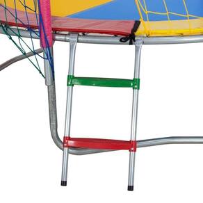 Outro ponto muito importante para essa cama elástica, está em sua lona de salto colorida com tecido emborrachado fabricado no Brasil, que chama a atenção das crianças e quando exposta ao sol por longo tempo não esquenta, ou seja, não queima os pés das crianças.
