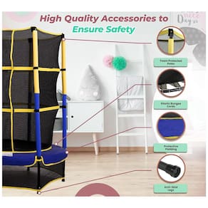 Enorme diversão de salto interno o trampolim infantil vem com um sistema de corda elástica para aproveitar a melhor diversão de salto em nosso mini trampolim para crianças. Usamos cordas elásticas em vez de molas de metal para proteger as crianças de pisar em molas que poderiam machucar seus pés. As cordas elásticas presas à almofada de salto suportam a pressão de maneira uniforme e permitem um salto suave que as crianças a se manterem envolvidas em uma atividade recreativa. Trampolim e Resistente Os bastões de apoio são cobertos com espuma anticolisão, criando um ambiente de jogo dentro do trampolim bebê, criança. O trampolim infantil com rede apresenta um design de compartimento sem lacunas para garantir a segurança das crianças ao pular. As almofadas de segurança contêm espuma de células fechadas que é altamente durável e não fica fora de forma. O trampolim infantil tem 6 pernas antiderrapantes de apoio e estáveis que mantêm o equilíbrio da criança enquanto faz movimentos corporais. Atividade Recreativa e Saudável Interna Perfeita É um presente perfeito para surpreender crianças preciosas. As crianças adorariam queimar suas energias enquanto os pais podem observá las através da rede transparente. É uma atividade divertida e saudável completa e incentiva as interações entre pais e filhos. O trampolim infantil indoor é perfeito para fortalecimento do núcleo, controle de equilíbrio e muitas outras habilidades motoras